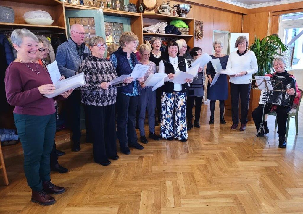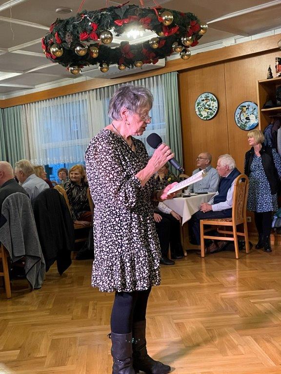 Der Chor stimmte mit „Guten Abend, schön Abend…“ an, begleitet von Andrea am Akkordeon – eine willkommene Überraschung. Danach ließ der Vorsitzende mit einem Gedicht auf das Geleistete zurückblicken, bevor der Chor mit „Sind die Lichter angezündet…“ die Feier in warme Klänge tauchte.