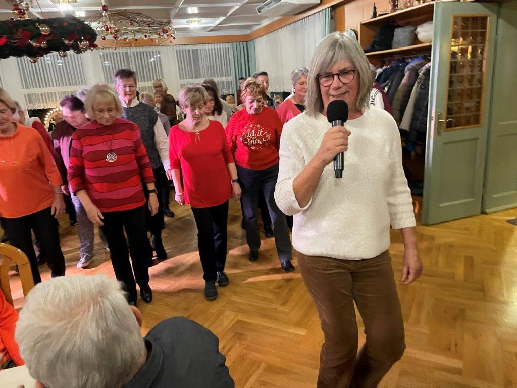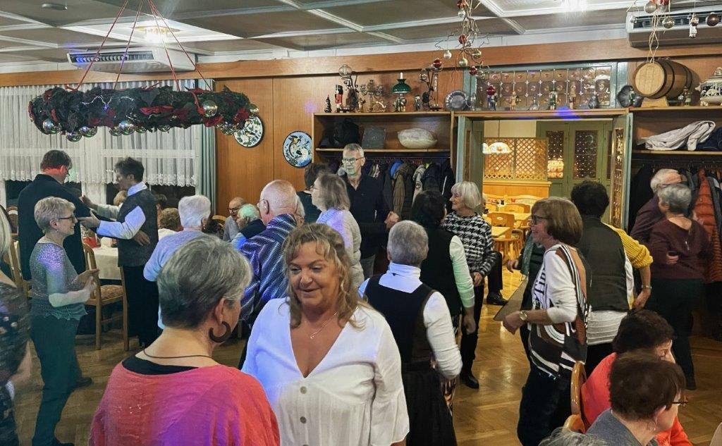 Beim Kaffeetrinken lockte der süße Gebäckteller, danach nahm die Disco mit DJ Gerald Fahrt auf. Zwischenzeitlich brachten Friedlinde und Christa-Vera heitere Momente, und Kerstin übernahm die Initiative für eine Line-Dance-Formation – eine Herausforderung, die alle mit Begeisterung annahmen. Die weitere Musik ließ die Tanzfläche nie leer und alle genossen den Abend in vollen Zügen.