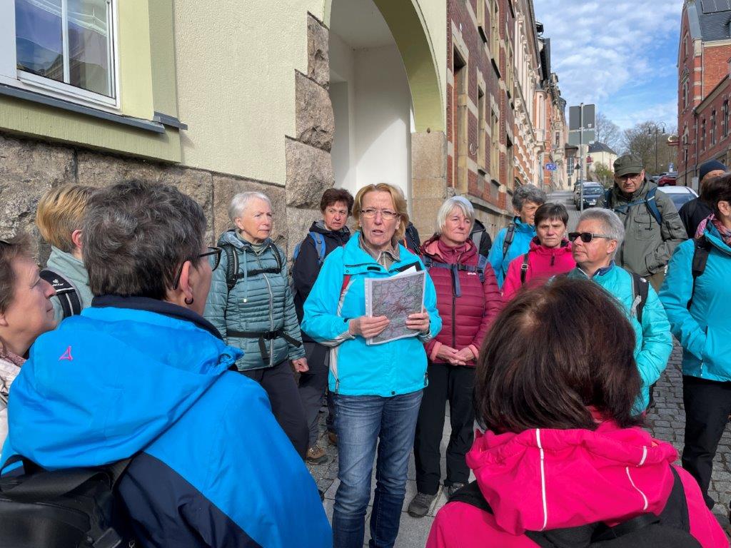 Über Wetzelsgrün kehrten wir nach Treuen zurück, wo die erste Etappe nach 8 Kilometern endete. Von den 26 Teilnehmenden nutzten 16 die Gelegenheit, Treuen weiter zu erkunden und gemeinsam ein gemütliches Mittagessen zu genießen.