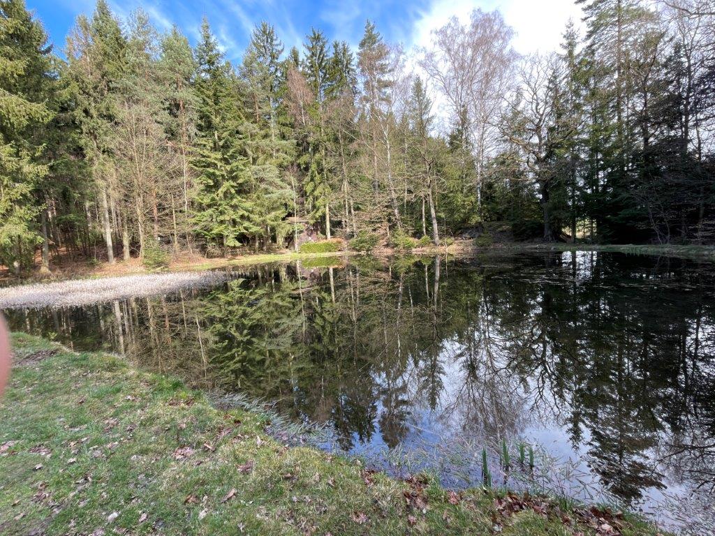 Dann ging es hinein ins Trebatal, zum Zusammenfluss von Treba und Trieb, einem der bedeutendsten Oberläufe der Talsperre Pöhl. Auf dem Weg durch Wiesen und Wälder in Richtung Thoßfeld begegneten uns zwei geheimnisvolle Teiche, im Wald verborgen – den Glöckl-Teichen. Die fantastischen Spiegelbilder berührten alle Sinne.