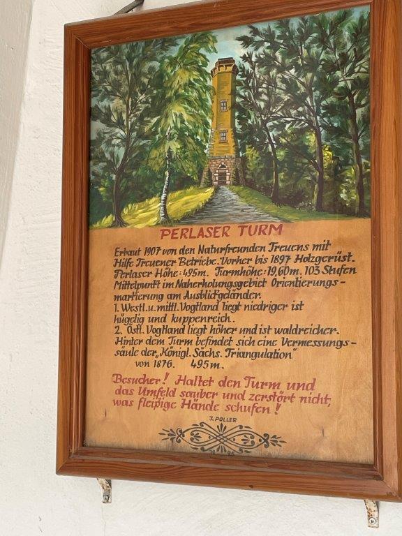 Die übrigen Wanderer nahmen nach einer kurzen Rast am Grill-Imbiss am Bahnhof die Fortsetzung der Tour in Richtung Perlaser Turm in Angriff. Oben angekommen, fielen Blick und Atem gleichermaßen der grandiosen Aussicht ins Göltzschtal, nach Reichenbach, Mylau und ins obere Vogtland zu – ein Panorama, das den Tag mit Freude füllte.