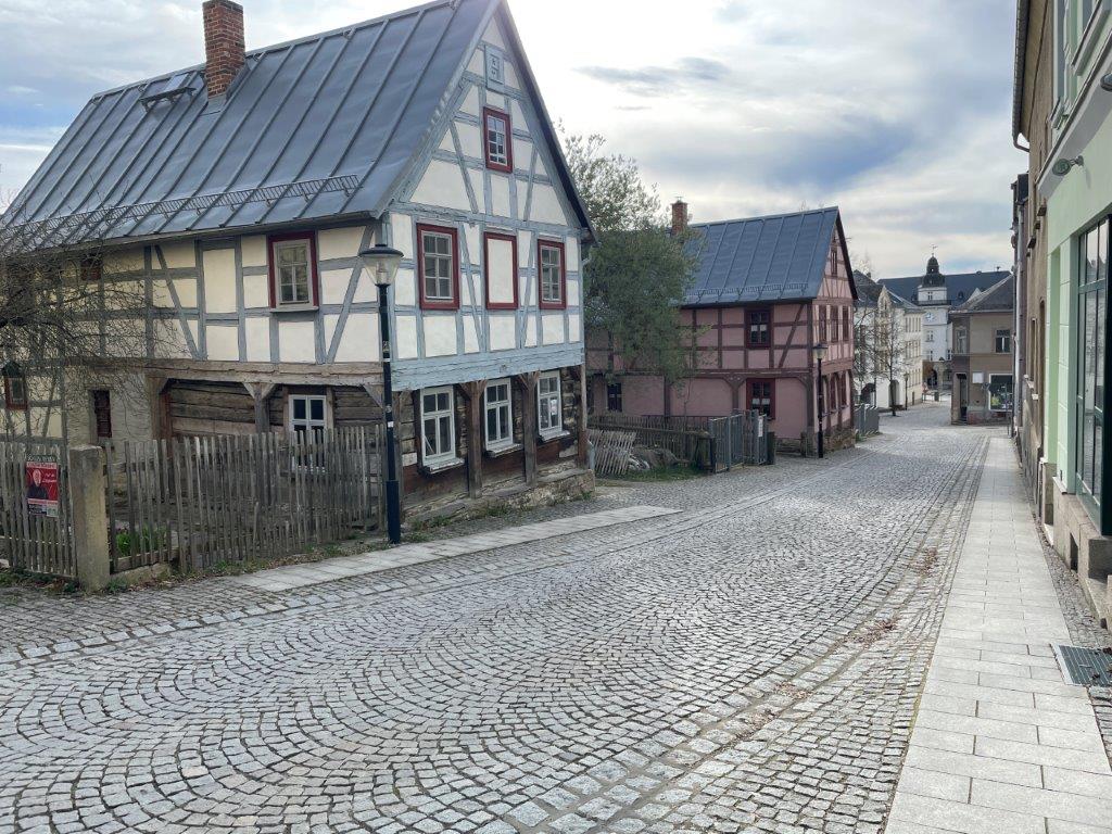 Der Weg führte uns zuerst ins Stadtzentrum, vorbei an der liebevoll restaurierten Post, und weiter zu den Krötenbachhäusern, den charaktervollen Umgebindehäusern. Bei einem der Häuser war die Restaurierung bereits erfolgreich abgeschlossen worden, ein erstes Zeichen dafür, wie lebendig Geschichte hier spürbar bleibt.