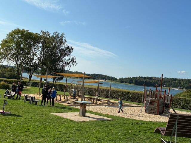 An der „Pöhl“ entlang ging es durch den Kletterwald, über die Sperrmauer zur Minigolfanlage. Hier erfolgte die erste Pause zur Freude der Kinder, welche diese zum Spielen ausgiebig nutzten. Unsere Wanderung führte an der Bungalowsiedlung Neudörfel vorbei, um in den Jocketaer Wald zu gelangen. Es gab sehr schöne Panoramablicke über die Talsperre. Nun gelangten wir nach Alt Jocketa, vorbei an der Kirche ging es weiter zur Pöhler Straße. Auf ihr erreichten wir in Richtung Talsperre den neuerbauten Pavillon (Mit der Ortsdarstellung von Pöhl vor dem Bau). Über die Sperrmauer mit dem herrlichen Blick ins Triebtal erreichten wir wieder den Talsperrenweg. Angekommen am Rastplatz gab es für die Wanderer einen Imbiss (Wiener mit Kartoffelsalat) und Getränke. Dies war ein schöner Abschluss der ersten gemeinsamen Wanderung.