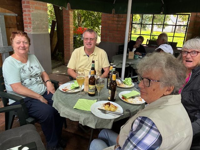 Mit dem Bus ging’s bis zum Haltepunkt Theuma – Lochschänke und hier starteten wir und folgten der Bergahornallee mit Apfel- und Pflaumenbäumen gesäumt. Wir erreichten das ehemalige Wasserschloß Mechelgrün, das nur noch ein trauriger Ruinenrest ist. Nach einer Rast wanderten wir bis zum Kohlwald und konnten hier wunderschöne Blicke in unser nördliches Vogtland genießen. Nun ging’s bergab und nach zahlreichen Hinweisen (von Henry) auf Natur und Umgebung erreichten wir schließlich das Bistro in Mechelgrün, wo für alle bereits die bestellten Mittagsmenüs bereitstanden. Mit dem Bus ging es letztlich wieder zurück nach Plauen.