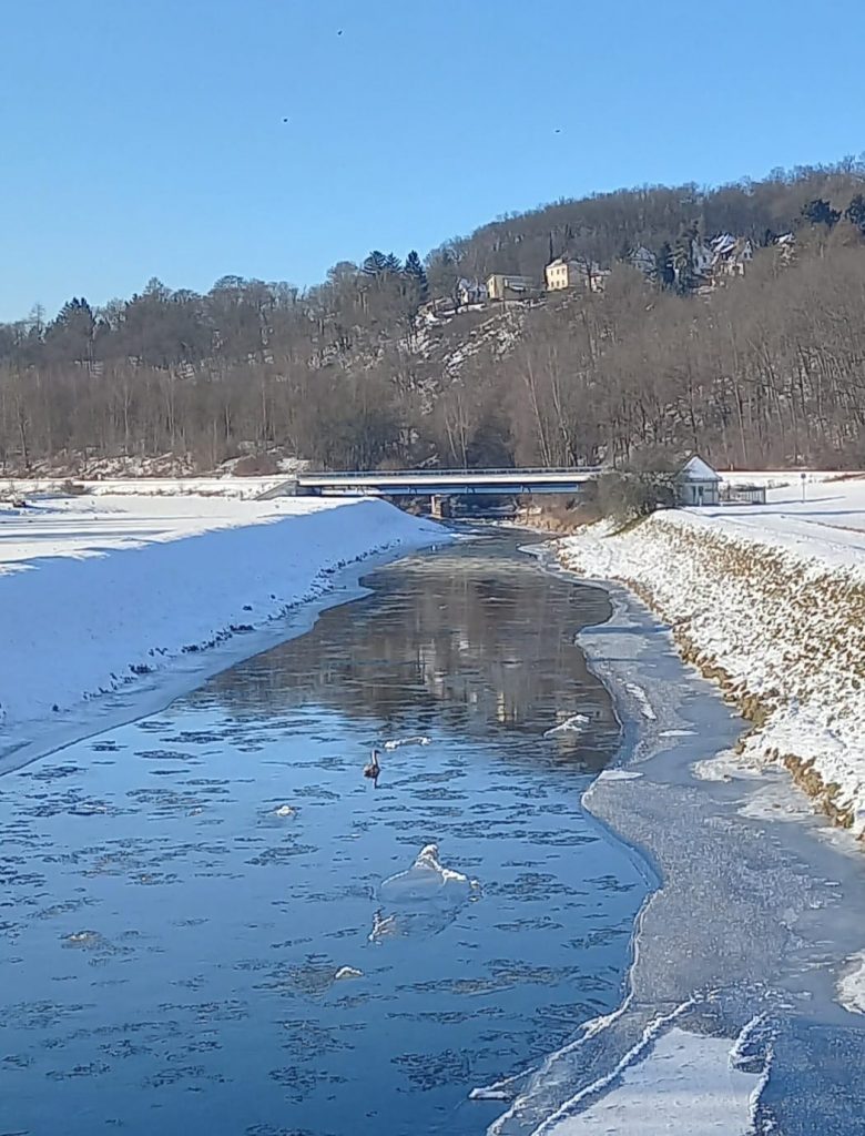 Am 7. Januar trafen sich 22 Naturfreunde und 5 Gäste zur ersten Seniorenwanderung im neuen Jahr an der Endhaltestelle Preißelpöhl. Über den Oelweg liefen wir Richtung Kläranlage. Die Sonne schien und der frische Schnee knirschte unter unseren Füßen. Mit „Kathrin‘s Kräuterlikör“ wünschten wir uns alle bei einer Pause Gesundheit und Wohlergehen. Unterwegs staunten wir über die Eisschollen auf der Elster. Am Rittergut angekommen, erklärte uns Kathrin einiges über die Geschichte dessen. Das Herrenhaus ist aus dem Jahr 1887 und wird derzeit restauriert.
