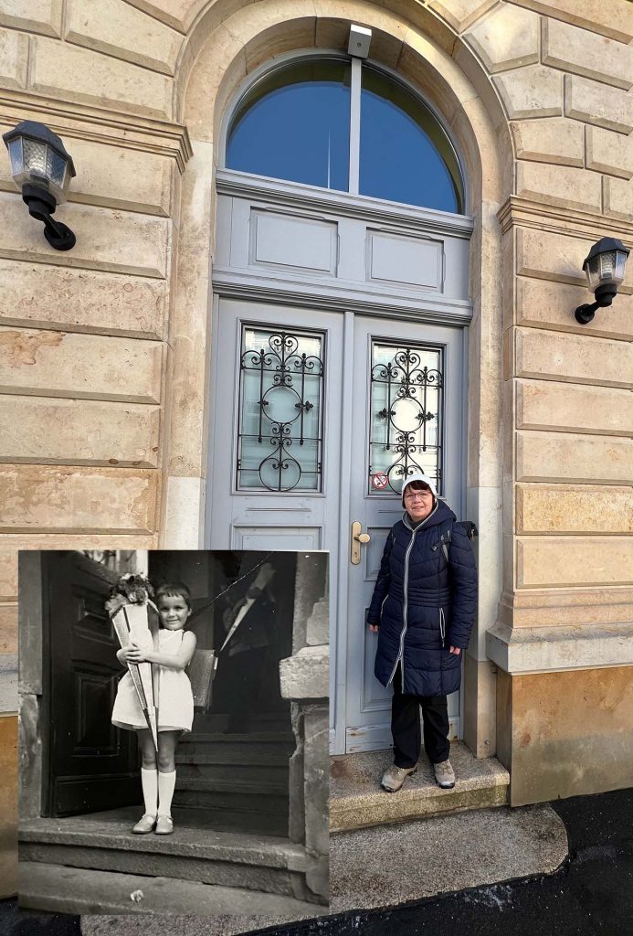 Die Gruppe kam vorbei an der Persil-Uhr am Heppeplatz, dem Zoephelschen Haus, der St. Jakobi-Kirche, einer Glocke davor, und der Katharinenkirche. Weiter ging es dann zu den Schulen. Katharina erinnerte an ihre Schuleinführung 1964, mit einem Foto davon. Im Park bei den Schulen legten wir eine kleine Rast ein. Birgit T. hatte leckeren Salbeilikör zum Probieren dabei. Auch Sonja R. hat kleine Überraschungen verteilt. Die Sonne schien warm.