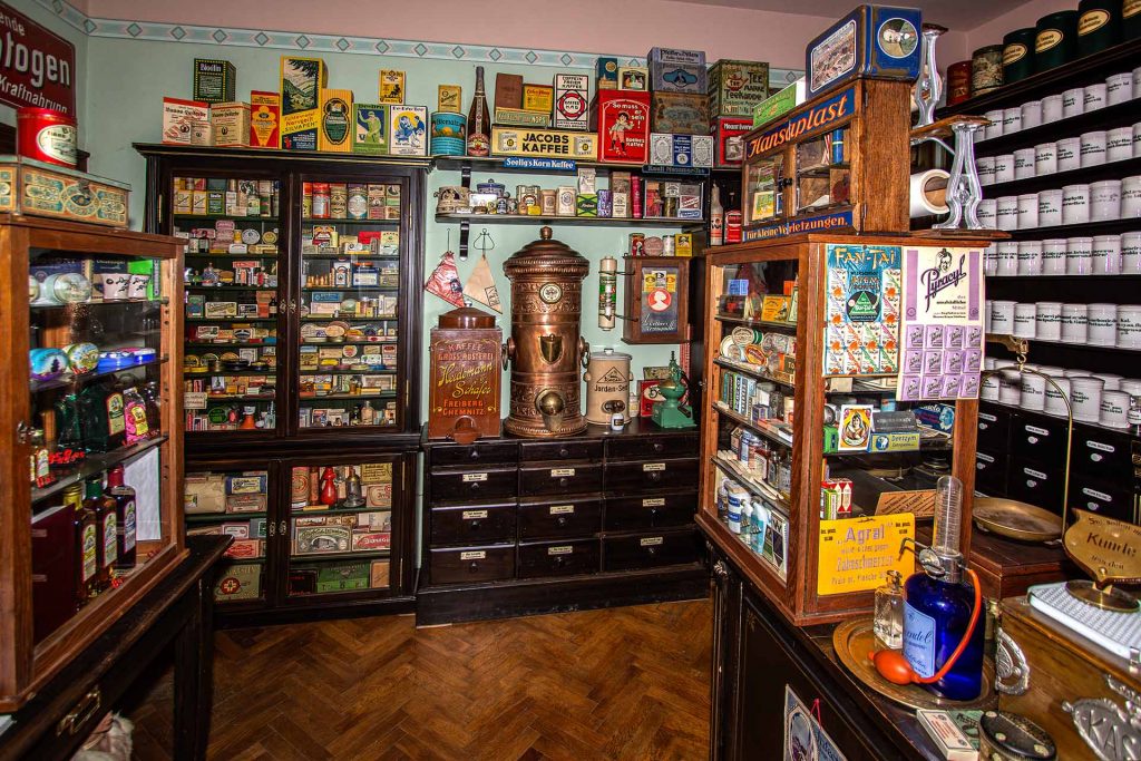 Die Oelsnitzer Sperkengeschichte hatten wir schon vorgelesen bekommen. Auf dem Marktplatz versammelten wir uns dann am Brunnen vor dem Rathaus, der diese Geschichte darstellt, und der von Peter Luban entworfen wurde, zu einem Foto. Spontan war dann ein Besuch bei Herrn Schilbach in der Drogerie mit Drogeriemuseum, welches liebevoll gestaltet ist.