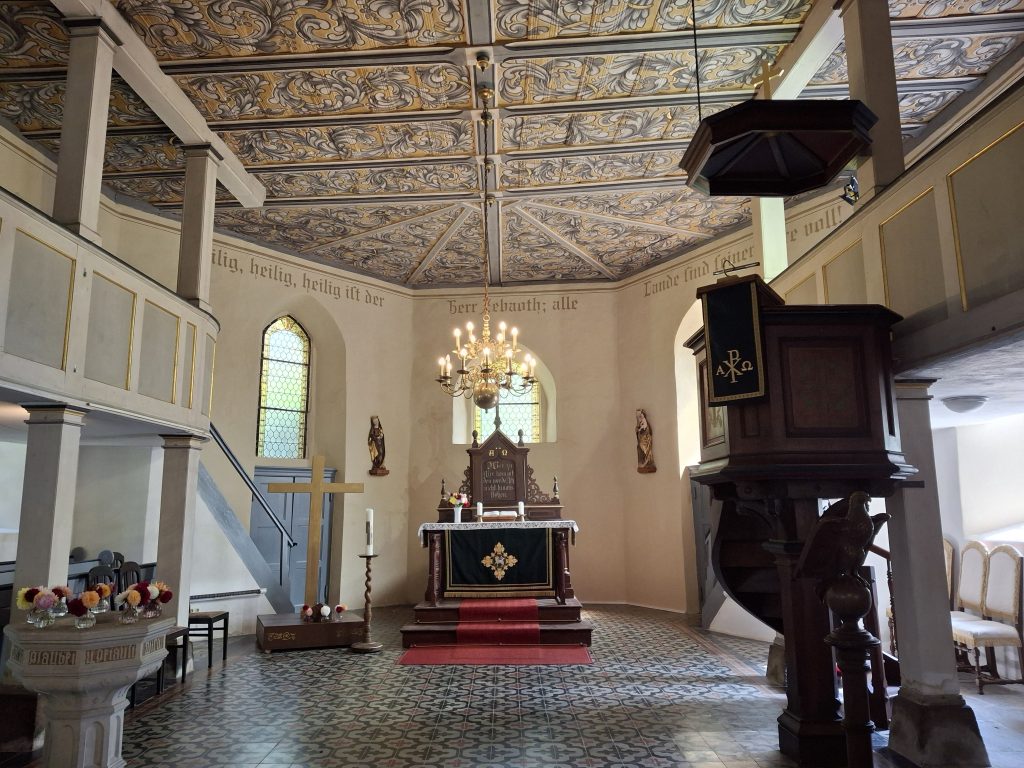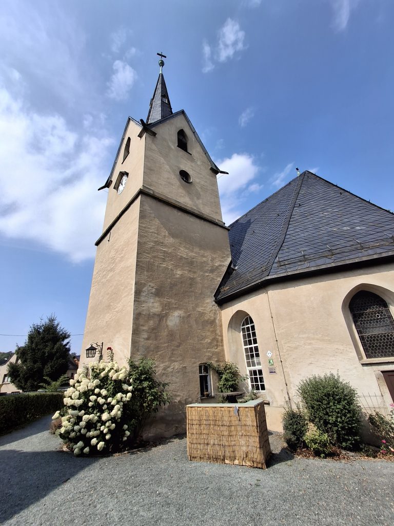 Frau Hartenstein von der Kirchgemeinde Theuma-Altensalz erwartete uns schon zu einer Führung, zunächst in der Alten Schule. Diese war liebevoll renoviert und umgestaltet worden, zu einer Begegnungsstätte mit Café im Außenbereich und einer 2-Zimmer-Herberge für eine kleine Auszeit im Obergeschoss. In der sehenswerten Kirche erfuhren wir dann viel Interessantes über die Geschichte, die Restaurierung, weitere Vorhaben und das Gemeindeleben. Frau Hartenstein ließ es sich nicht nehmen, uns zum Abschluss mit einem kleinen Orgelkonzert zu überraschen. Ein großes Dankeschön!