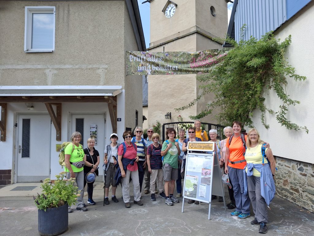 An diesem Mittwoch bei schönem Wanderwetter war nicht der Weg das eigentliche Ziel, sondern vor allem die Alte Schule und die Kirche in Altensalz. 9 Naturfreunde und 6 Gäste starteten voller Erwartungen vom Campingplatz Gunzenberg aus die ca. 10 km lange Tour.